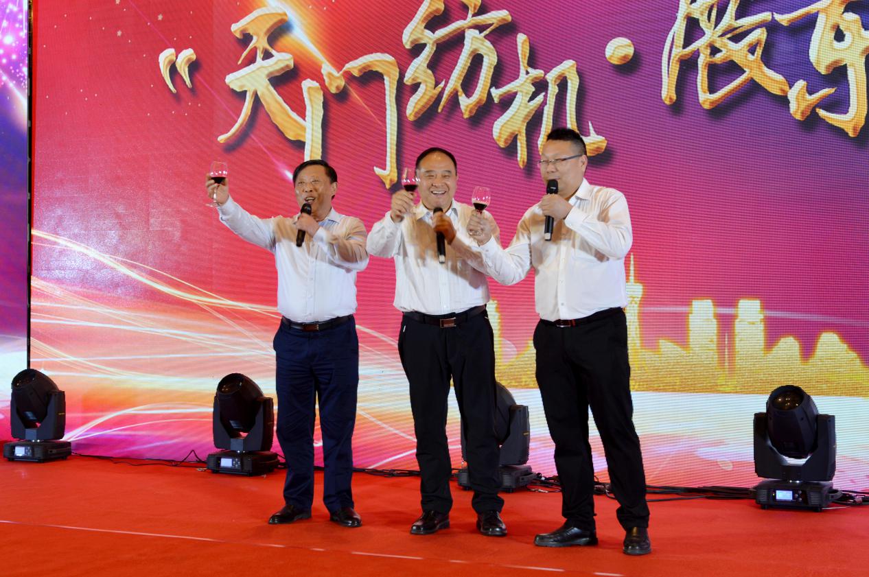 (中國紗線網(wǎng)總編王果剛、天門紡機(jī)副總經(jīng)理肖少華、展東紡織機(jī)械專件廠總經(jīng)理王國海晚宴共同祝酒)