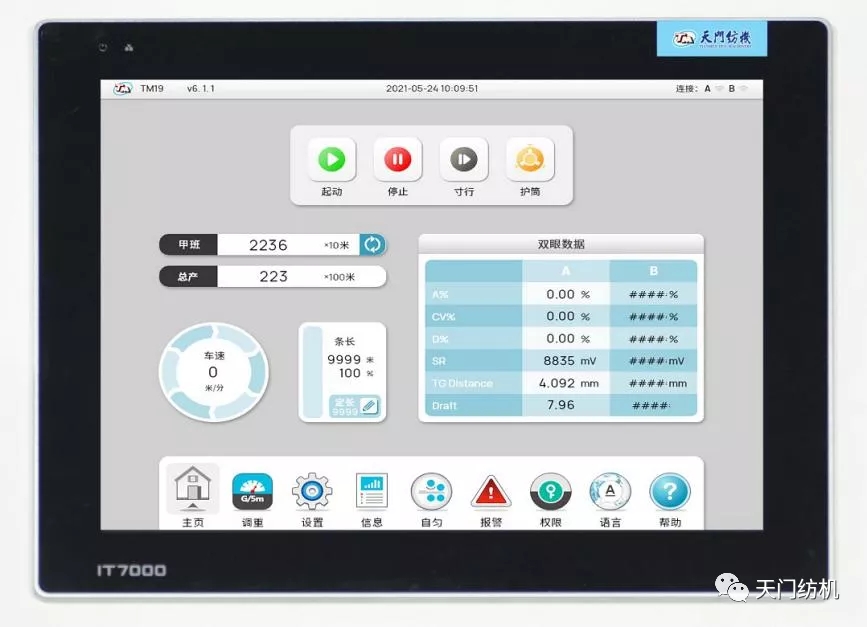 天門紡機在新一代T1系列并條機設(shè)計中,創(chuàng)新性地融入“系統(tǒng)化、人性化、圖形化”的設(shè)計理念。