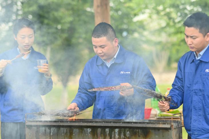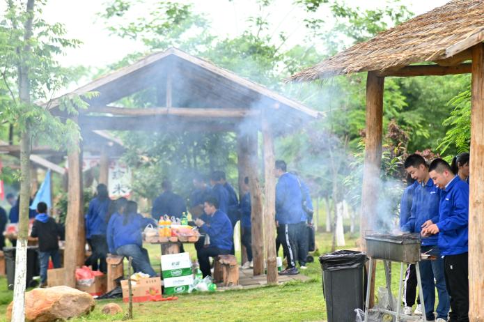 帶著依依不舍的心情,青年員工們告別張家湖國(guó)家濕地公園,來(lái)到皂市長(zhǎng)壽村原村。這是一座位于皂市鎮(zhèn)境內(nèi)的農(nóng)家樂(lè),田園氣息濃烈,采摘和燒烤樂(lè)趣無(wú)窮,大家直奔燒烤專(zhuān)區(qū)。幾名青年員工已提前將炊具、餐具和食材運(yùn)送到目的地,大家不顧疲憊,開(kāi)始分配工作,我是“支賓先生”,你是“炊事員”,她是“勤雜員”。一會(huì)兒后,炊煙升起,香氣四溢,有燒烤和火鍋的香辣味,有菠蘿的香甜味,有主食的香糯味,更有青年朋友們團(tuán)結(jié)協(xié)作的歡聲笑語(yǔ)。