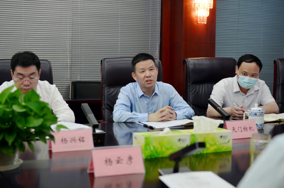 楊云彥副省長深入天門紡機(jī)生產(chǎn)現(xiàn)場了解生產(chǎn)經(jīng)營情況后,在座談會(huì)上聽取了天門紡機(jī)、天門通威生物科技有限公司等企業(yè)負(fù)責(zé)人的工作匯報(bào)。
