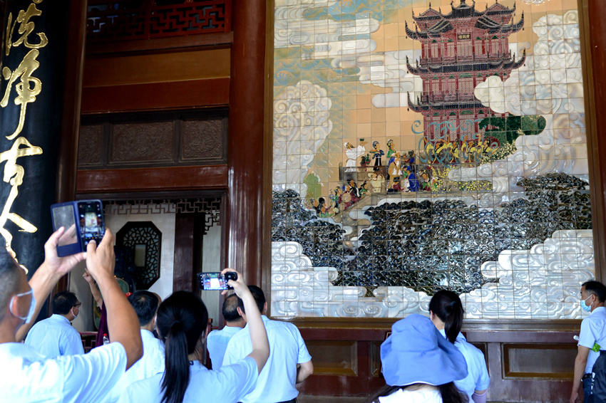 我們興致勃勃登臨黃鶴樓。黃鶴樓始建于三國時期,距今已有1700多年的歷史,是中國三大名樓之一?,F(xiàn)存的黃鶴樓建成于1985年,坐落在長江南岸武昌蛇山峰嶺之上。作為古今名樓,黃鶴樓承載了悠久燦爛的中華文化,唐代詩人崔顥的詩句“黃鶴一去不復返,白云千載空悠悠”,天人合一、境妙意遠,成為千古絕唱;李白詩句“故人西辭黃鶴樓,煙花三月下?lián)P州”,意趣盎然、灑脫不羈,彰顯詩仙神采;毛澤東詩句“煙雨莽蒼蒼,龜蛇鎖大江”,雄渾蒼茫、深沉豪放,抒發(fā)出一代偉人澎湃的革命激情…站在黃鶴樓頂極目遠眺,武漢三鎮(zhèn)盡收眼底,孕育了中華五千年文明的長江滾滾東去;建成于1956年的長江第一橋武漢長江大橋歷經60多年的風雨洗滌,巍然屹立;南來北往的貨輪客船穿江而過,汽笛聲聲。遠看鋼筋水泥澆筑的城市叢林,感受改革開放的滄桑巨變,作為中華兒女,油然而生一種自豪感和使命感。