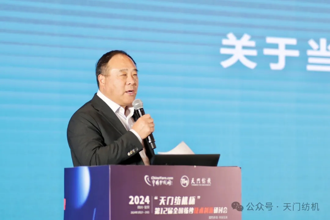 公司焦倫進總經(jīng)理介紹了天門紡機產(chǎn)品開發(fā)情況,剖析了行業(yè)形勢和企業(yè)面臨的機遇與挑戰(zhàn)。他說,天門紡機作為并條機的專業(yè)生產(chǎn)廠家,不斷加大研發(fā)投入,專注于技術(shù)創(chuàng)新和產(chǎn)品研發(fā),不斷探索新技術(shù),成功研發(fā)并推向市場的TM11、TM13、TM15、TM17系列并條機已成為行業(yè)主力產(chǎn)品。公司倡導“并條工序全自調(diào)勻整”的理念后,推出了TM19大圈裝高速自調(diào)勻整并條機,并已在多家國內(nèi)知名紡織企業(yè)推廣應用,效果十分明顯。在2023年11月舉行的上海國際紡機展覽會上,公司推出的TM25、TM27、TM29、TM35等四款并條機,因擁有智能在線檢測、一控多軸多臺、數(shù)據(jù)管理云平臺等技術(shù),引起了業(yè)界廣泛關(guān)注,得到了高度評價;他強調(diào),2024年,紡織行業(yè)仍將處于產(chǎn)業(yè)恢復期,市場逐漸回暖。同時,紡織行業(yè)正處在朝高端化、智能化、綠色化發(fā)展的轉(zhuǎn)型升級關(guān)鍵期,市場潛力大,積極向好的發(fā)展趨勢逐步顯現(xiàn)。因此,2024年將是機遇與挑戰(zhàn)并存、困難與希望同在的一年。只要我們保持定力,加強交流合作,群策群力,不斷推進數(shù)字化轉(zhuǎn)型和智能化改造,加快發(fā)展新質(zhì)生產(chǎn)力,就一定能開創(chuàng)更加美好的未來。